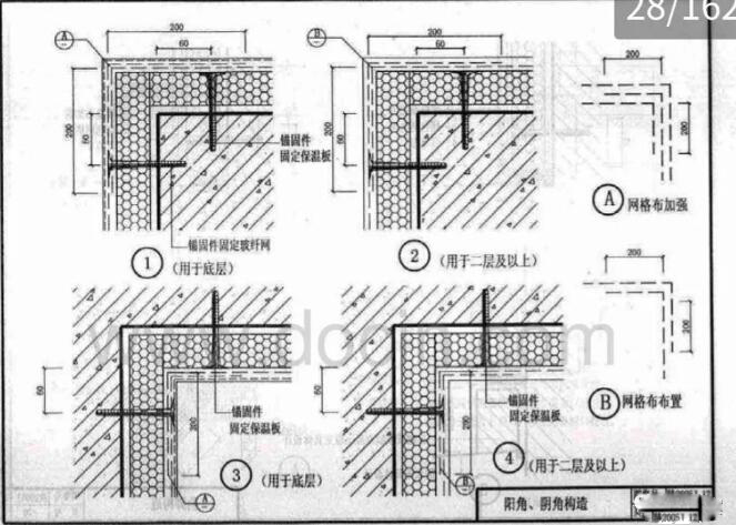 5、玻纖網(wǎng)搭接寬度100mm,角部搭接每側(cè)不小于200mm。