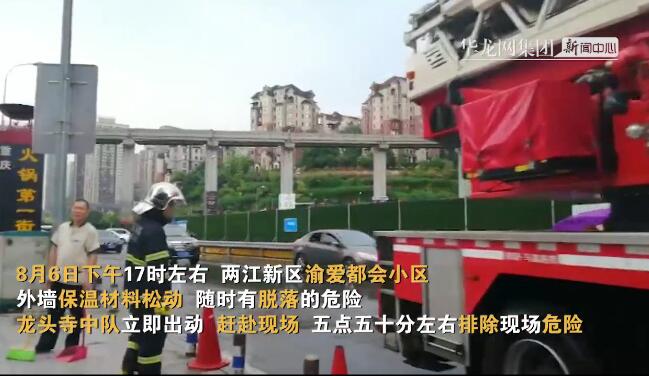 華龍網(wǎng)8月7日12時(shí)訊(記者 李華僑 通訊員 楊繼)8月6日17時(shí)15分,重慶兩江新區(qū)一火鍋店老板報(bào)警稱,兩江新區(qū)火鍋一條街中渝愛(ài)都會(huì)小區(qū)外墻保溫材料松動(dòng),松動(dòng)的面積大概5平方左右,隨時(shí)有脫落的危險(xiǎn),嚴(yán)重威脅下面行人安全。