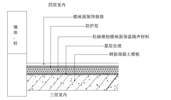 松銤維鉑樓地面保溫隔聲材料節(jié)點(diǎn)構(gòu)造圖